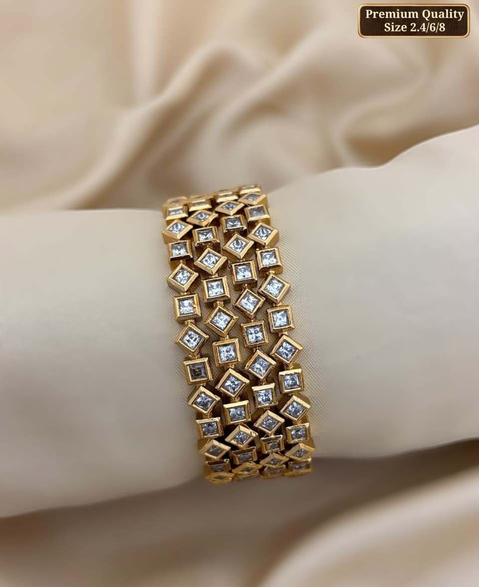 Elegant traditional bangles featuring intricate detailing with sparkling accents—perfect for adding a graceful festive touch to your look.