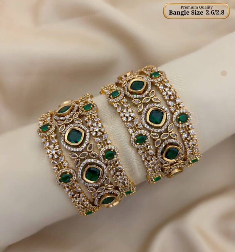 Elegant traditional bangles featuring intricate detailing with sparkling accents—perfect for adding a graceful festive touch to your look.