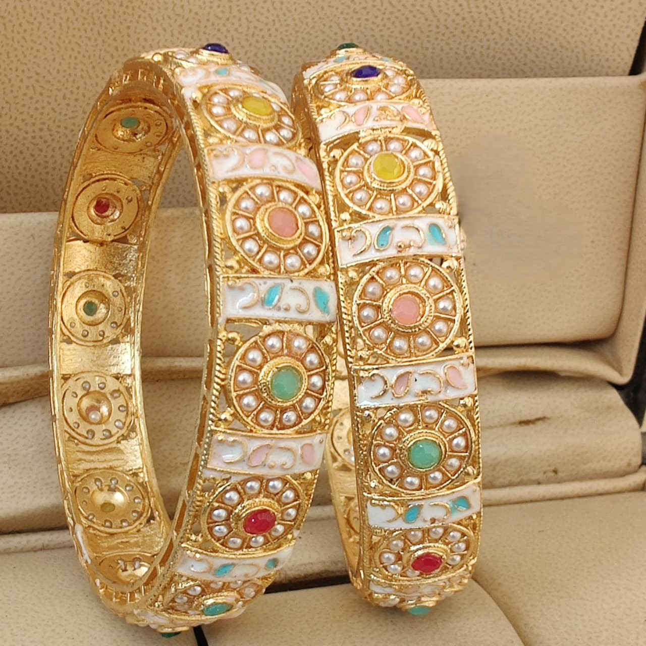 Elegant traditional bangles featuring intricate detailing with colored stones and sparkling accents—perfect for adding a graceful festive touch to your look.