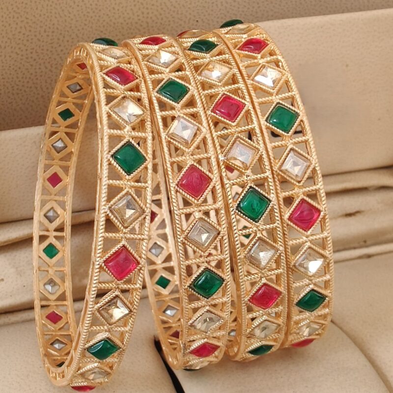 Elegant traditional bangles featuring intricate detailing with colored stones and sparkling accents—perfect for adding a graceful festive touch to your look.