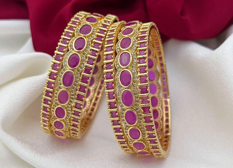 Elegant traditional bangles featuring intricate detailing with colored stones and sparkling accents—perfect for adding a graceful festive touch to your look.