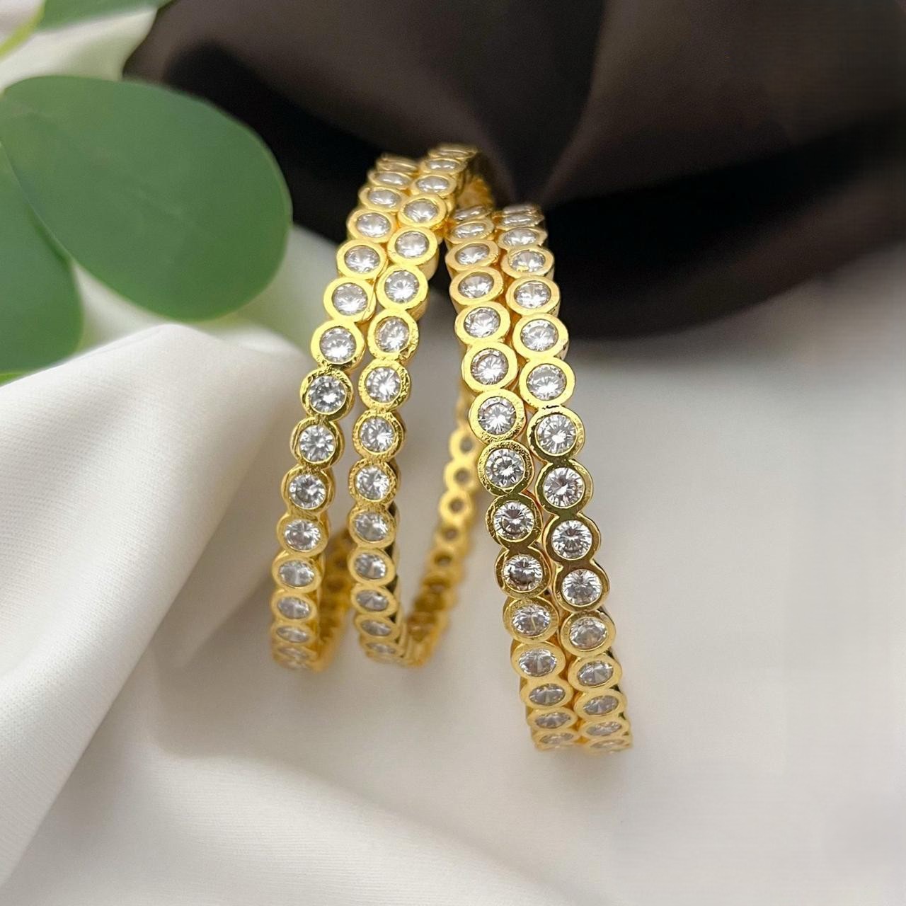 Elegant traditional bangles featuring intricate detailing with colored stones and sparkling accents—perfect for adding a graceful festive touch to your look.