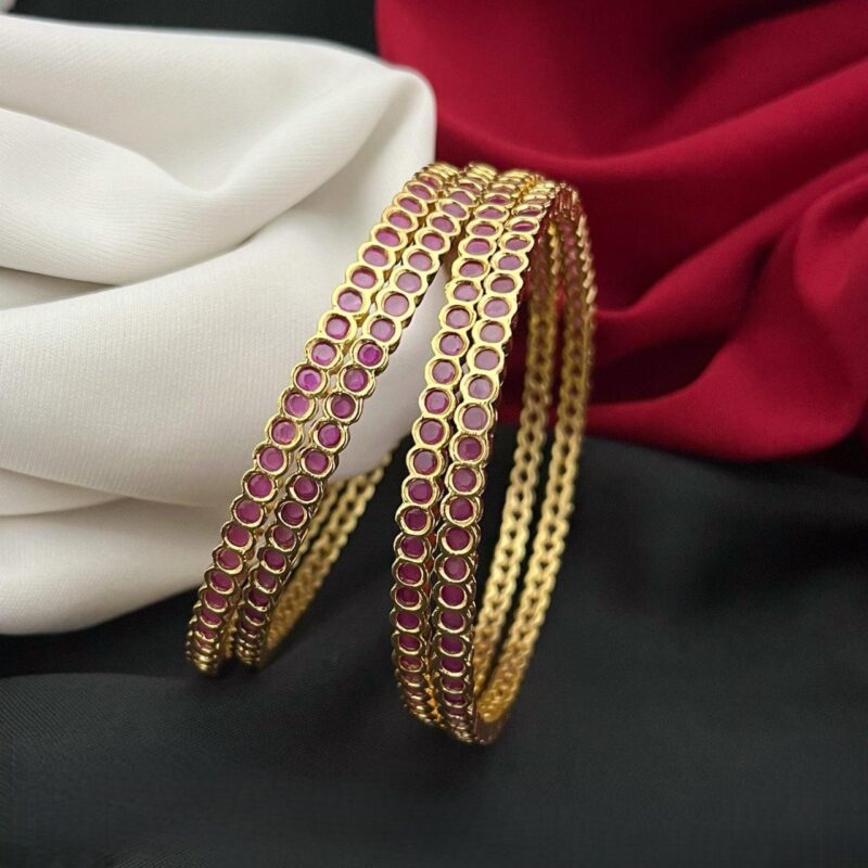 Elegant traditional bangles featuring intricate detailing with colored stones and sparkling accents—perfect for adding a graceful festive touch to your look.