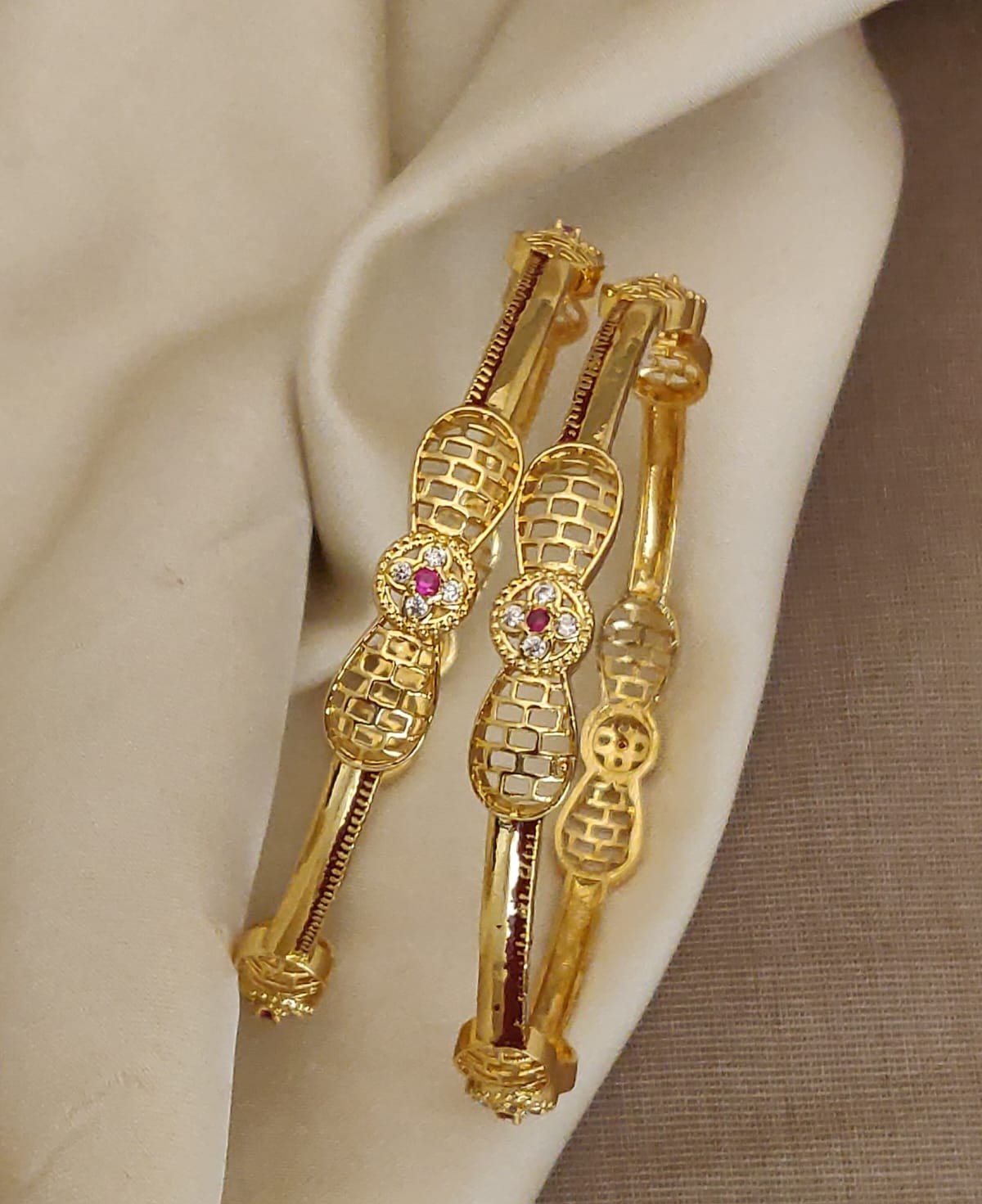 Elegant traditional bangles featuring intricate detailing with colored stones and sparkling accents—perfect for adding a graceful festive touch to your look.