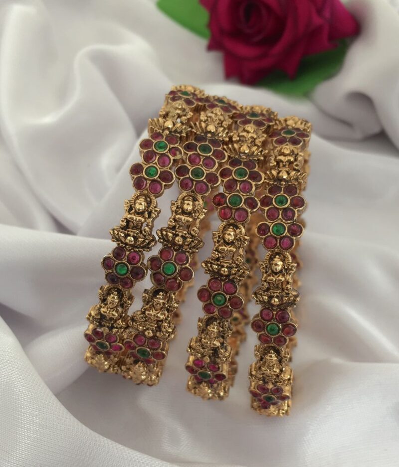 Elegant traditional bangles featuring intricate detailing with colored stones and sparkling accents—perfect for adding a graceful festive touch to your look.