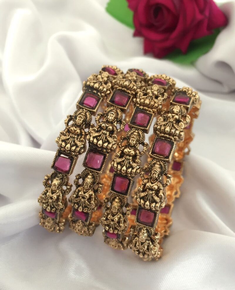 Elegant traditional bangles featuring intricate detailing with colored stones and sparkling accents—perfect for adding a graceful festive touch to your look.