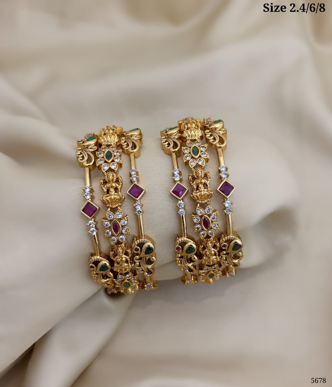 Elegant traditional bangles featuring intricate detailing with colored stones and sparkling accents—perfect for adding a graceful festive touch to your look.