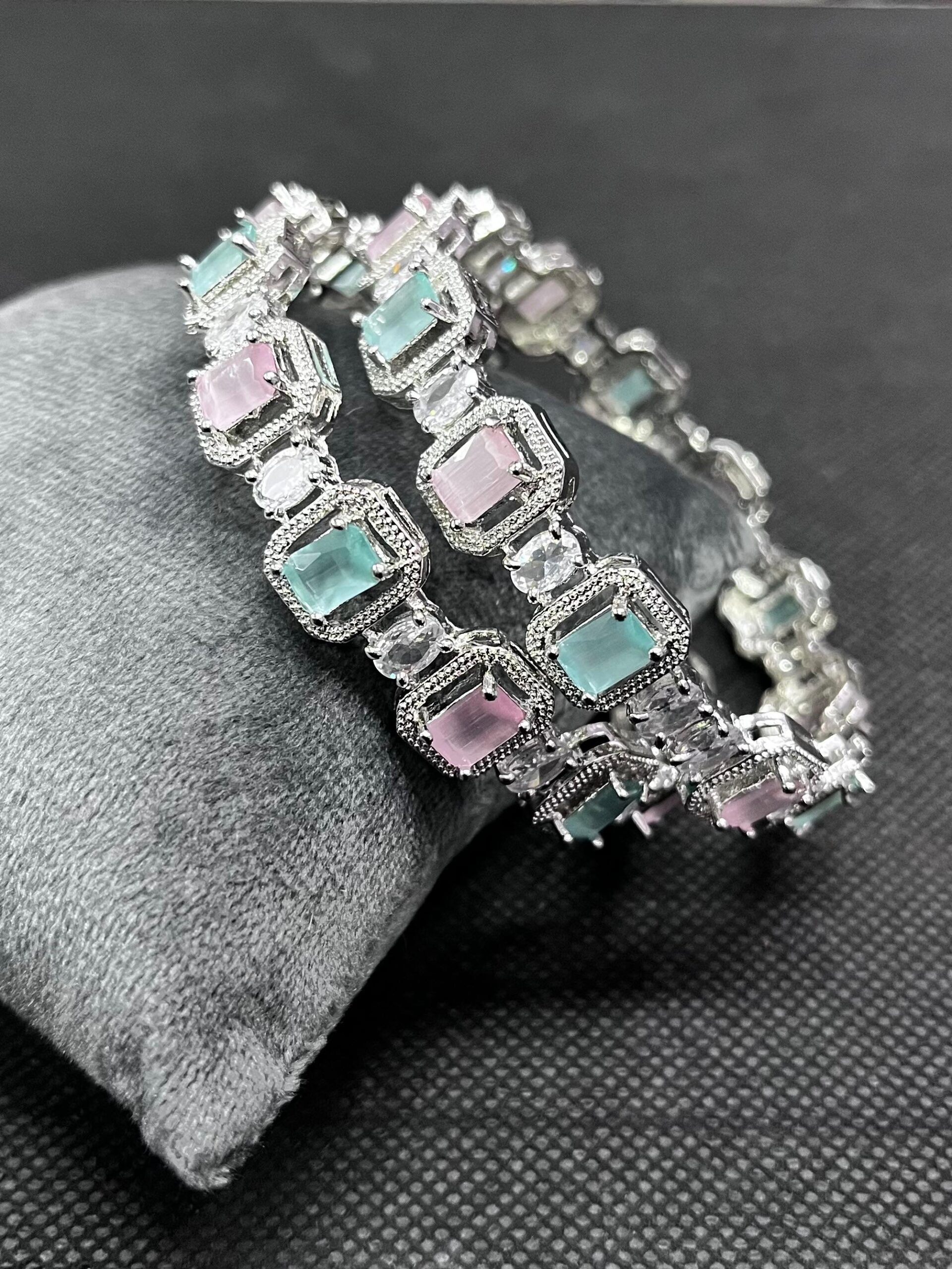 Elegant traditional bangles featuring intricate detailing with colored stones and sparkling accents—perfect for adding a graceful festive touch to your look.