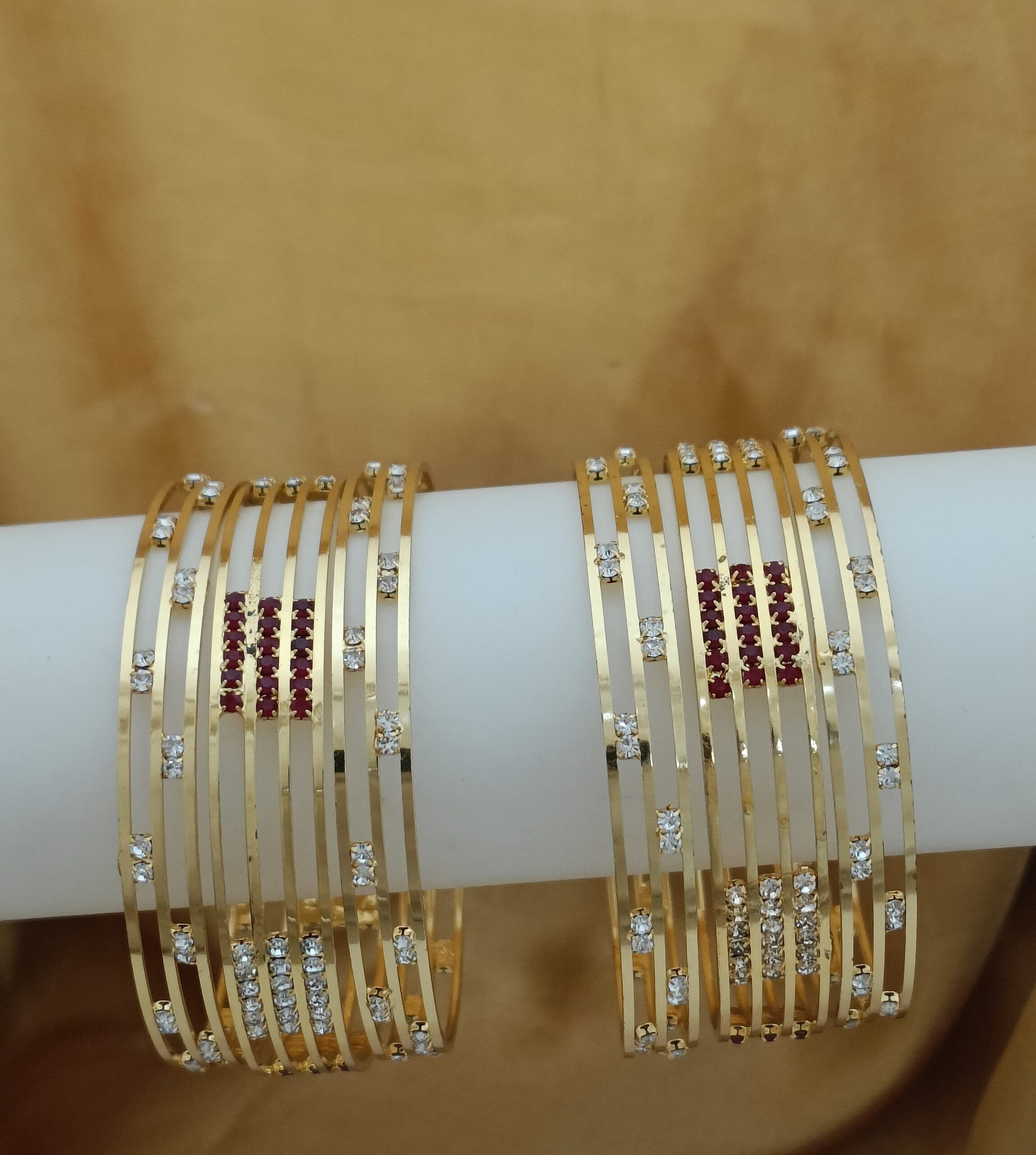 Elegant traditional bangles featuring intricate detailing with colored stones and sparkling accents—perfect for adding a graceful festive touch to your look.