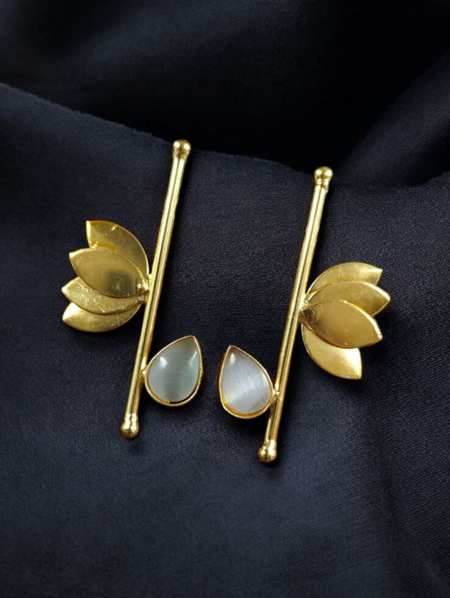 Contemporary elegance reimagined. These earrings combine artistic structure with modern aesthetics, offering a look that is both unique and beautifully wearable.