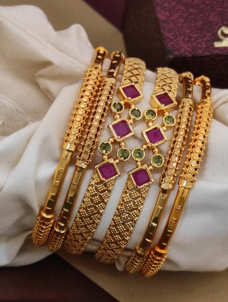 A timeless symbol of grace, these bangles blend refined craftsmanship with traditional charm. Their delicate curves and intricate detailing make them the perfect finishing touch for any occasion.