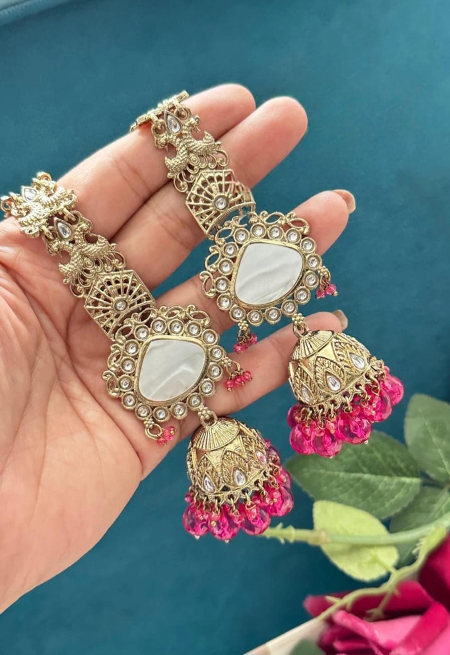 These exquisite earrings showcase the timeless beauty of traditional Kundan craftsmanship. Each piece is meticulously hand-set with sparkling stones that catch the light from every angle, creating a radiant and regal look.