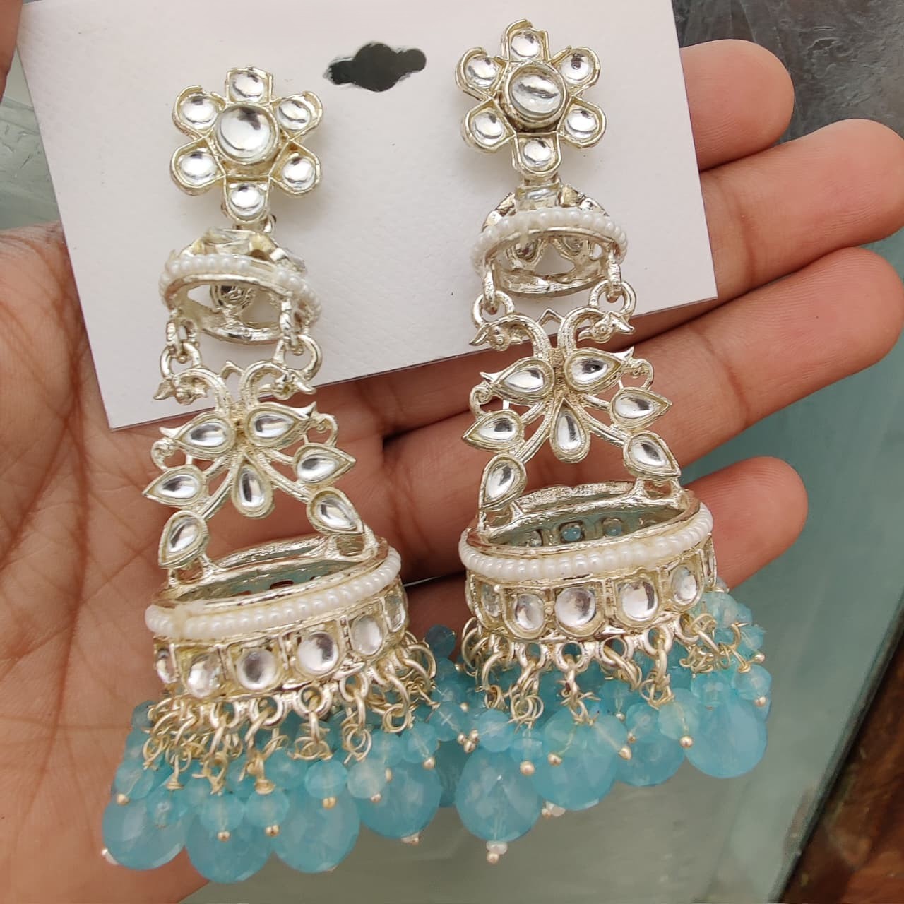 Beautiful tassel earrings with intricate detailing, colourful accents, and cascading chains—perfect for adding a bold and traditional touch to festive outfits.