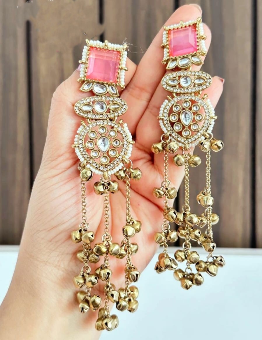 A striking pair of Kundan Jhumka Long Earrings, blending vintage charm with dramatic bell cascades for a powerful royal statement.