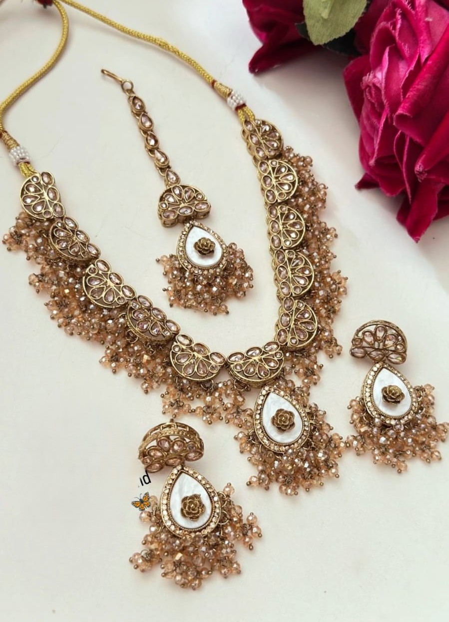 Elegant Kundan necklace set designed with fine craftsmanship, giving a regal and timeless appeal for any ethnic outfit.