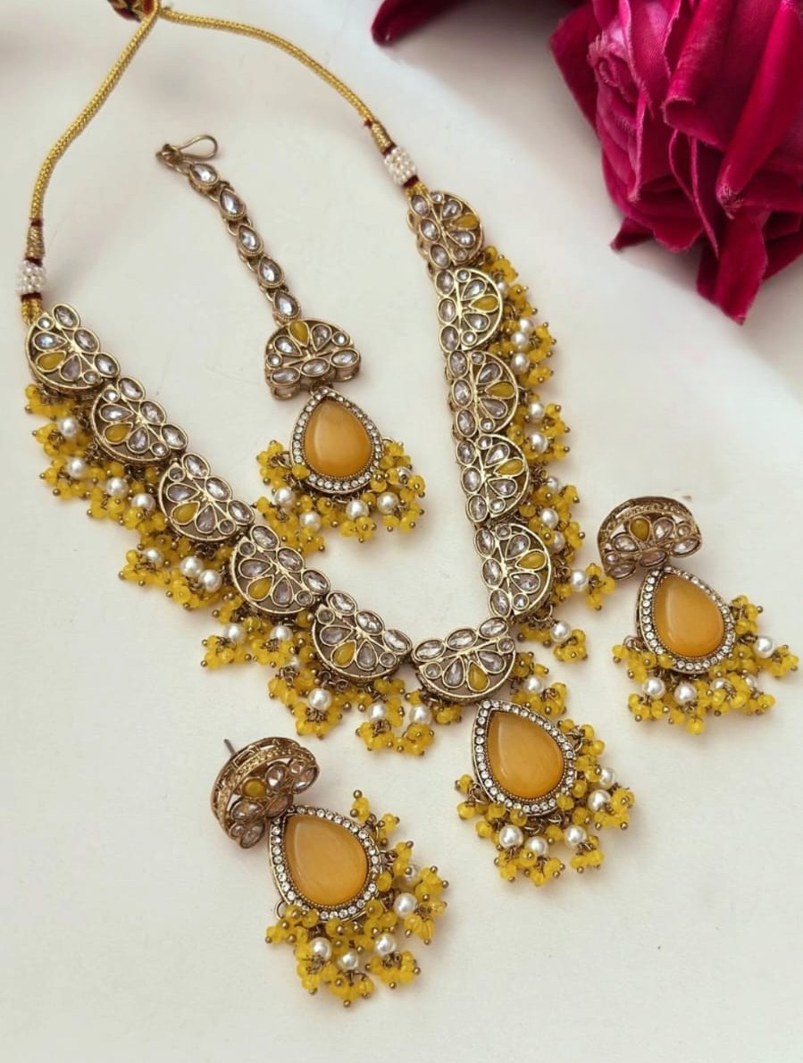 Elegant Kundan necklace set designed with fine craftsmanship, giving a regal and timeless appeal for any ethnic outfit.