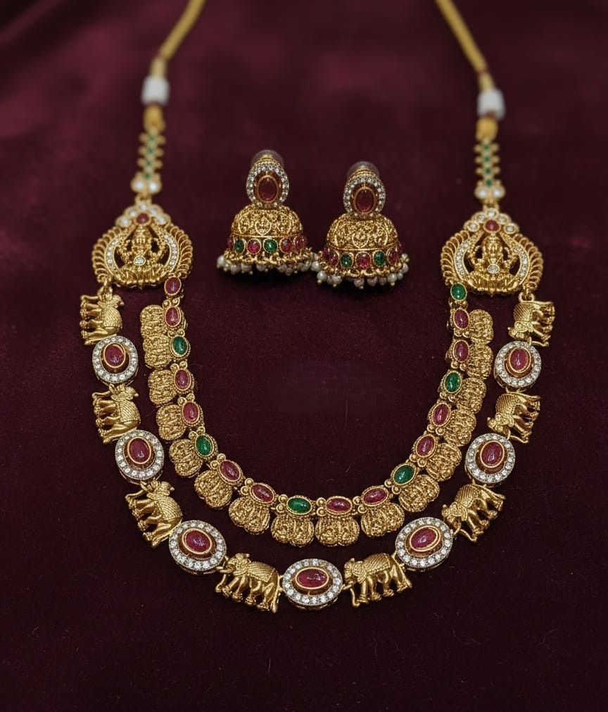 Temple Kundan Necklace with Earrings Set (2 Sets), ORN31224
