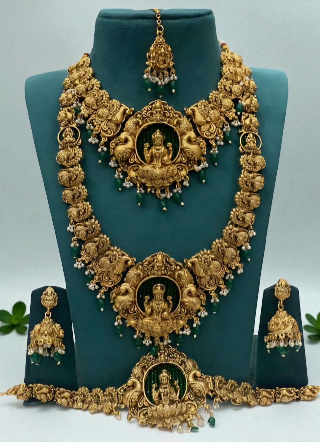Vedika in our Temple Necklace Set including Maangtikka