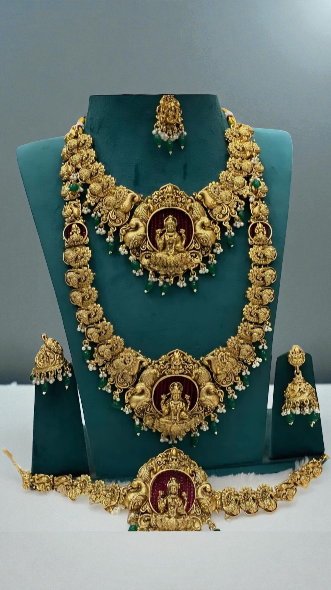 Embrace timeless elegance with this exquisite Kundan Temple Jewelry Set, featuring a beautifully crafted necklace paired with matching earrings. Inspired by traditional Indian temple designs, each piece is adorned with intricate Kundan work that reflects the grandeur of royal heritage.