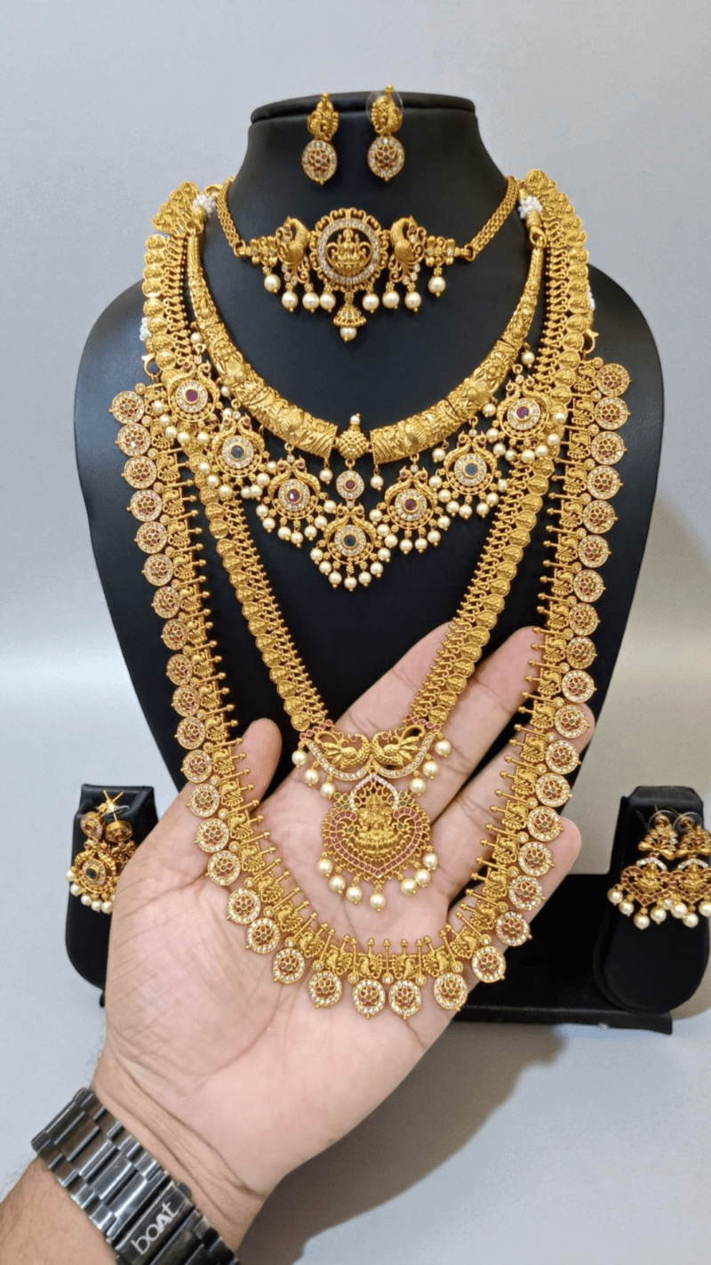 Embrace timeless elegance with this exquisite Kundan Temple Jewelry Set, featuring a beautifully crafted necklace paired with matching earrings. Inspired by traditional Indian temple designs, each piece is adorned with intricate Kundan work that reflects the grandeur of royal heritage.