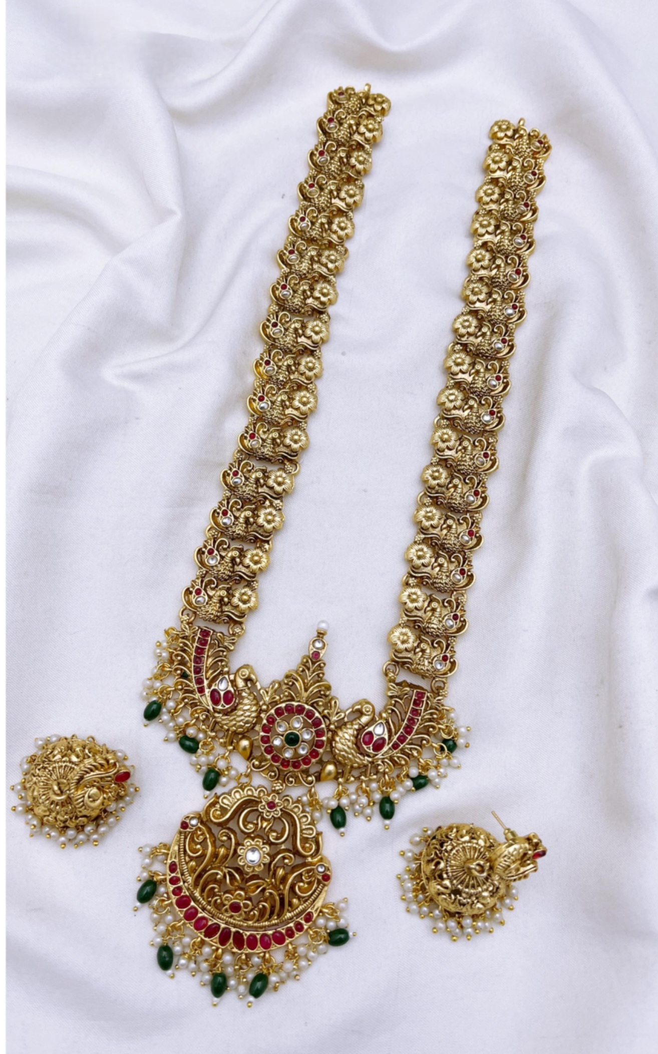 Kundan Temple Jewellery Set with Peacock Design, ORN30033