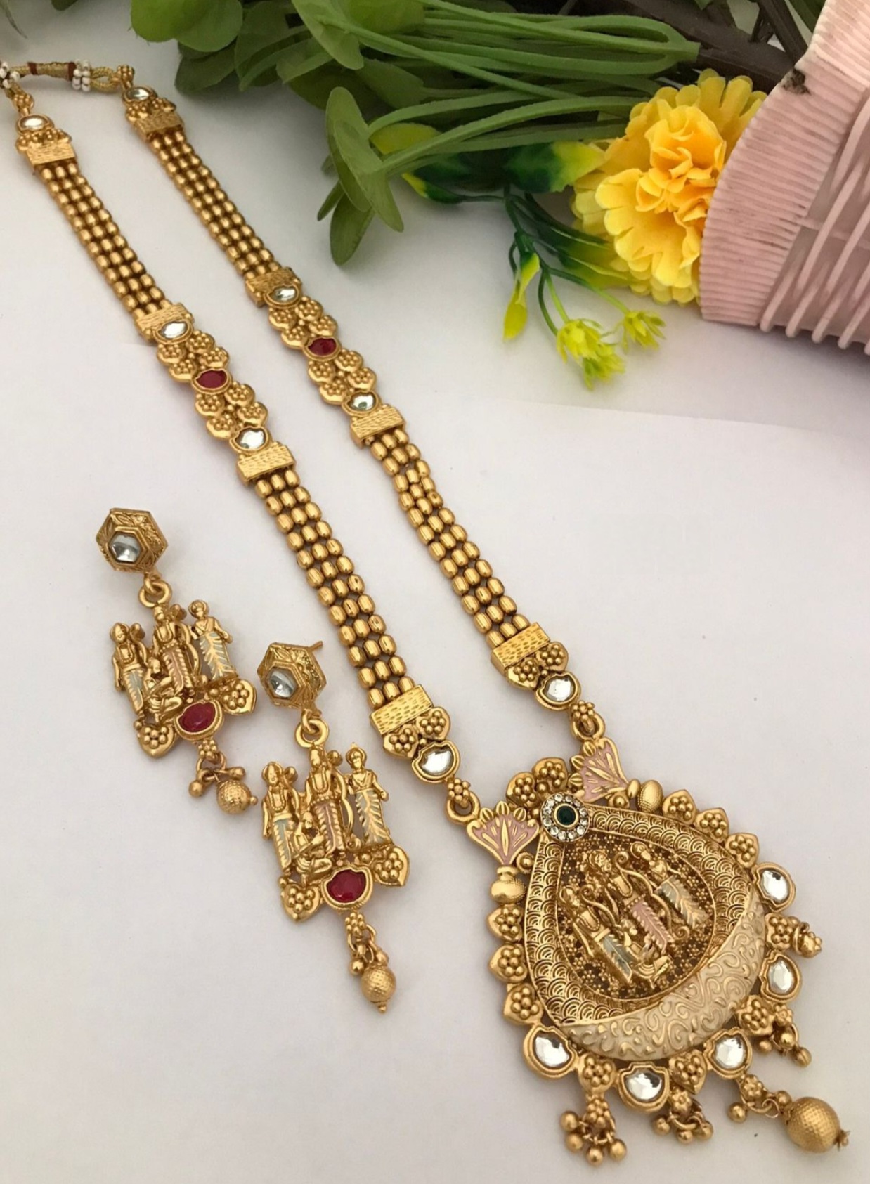 Temple Kundan Necklace with Earrings Set (2 Sets), ORN31223