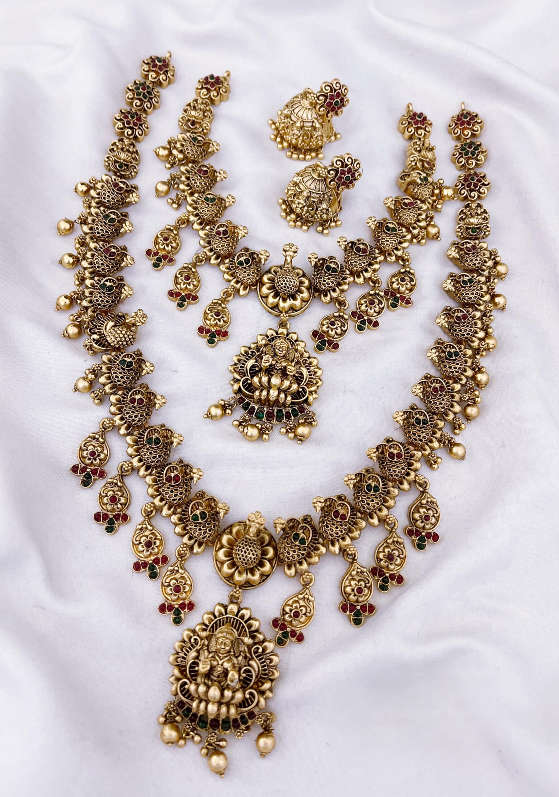 Elegant Kundan Temple necklace set designed with fine craftsmanship, giving a regal and timeless appeal for any ethnic outfit.
