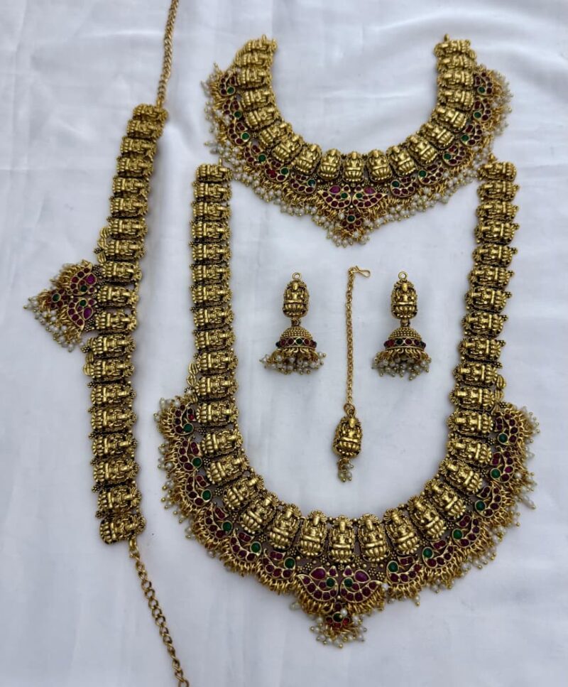 Elegant Kundan Temple necklace set designed with fine craftsmanship, giving a regal and timeless appeal for any ethnic outfit.