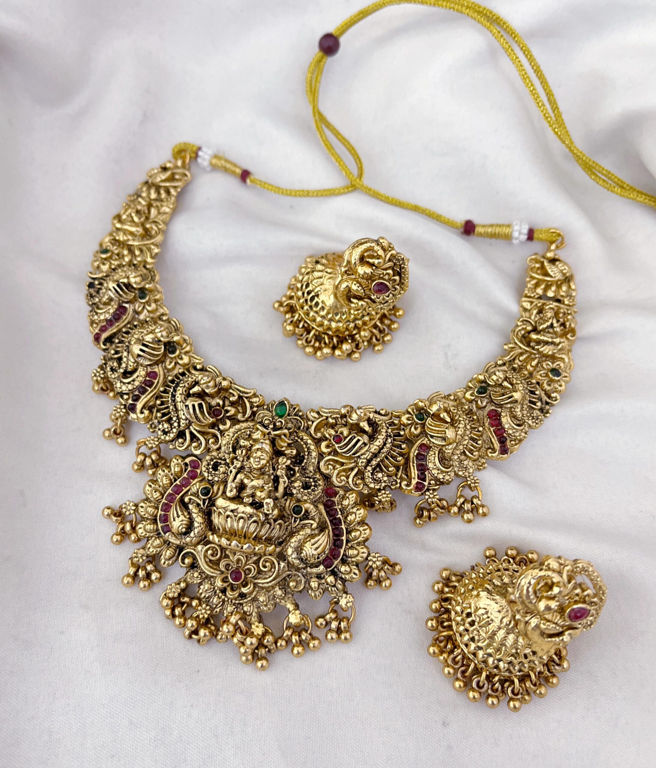 Elegant Kundan Temple necklace set designed with fine craftsmanship, giving a regal and timeless appeal for any ethnic outfit.