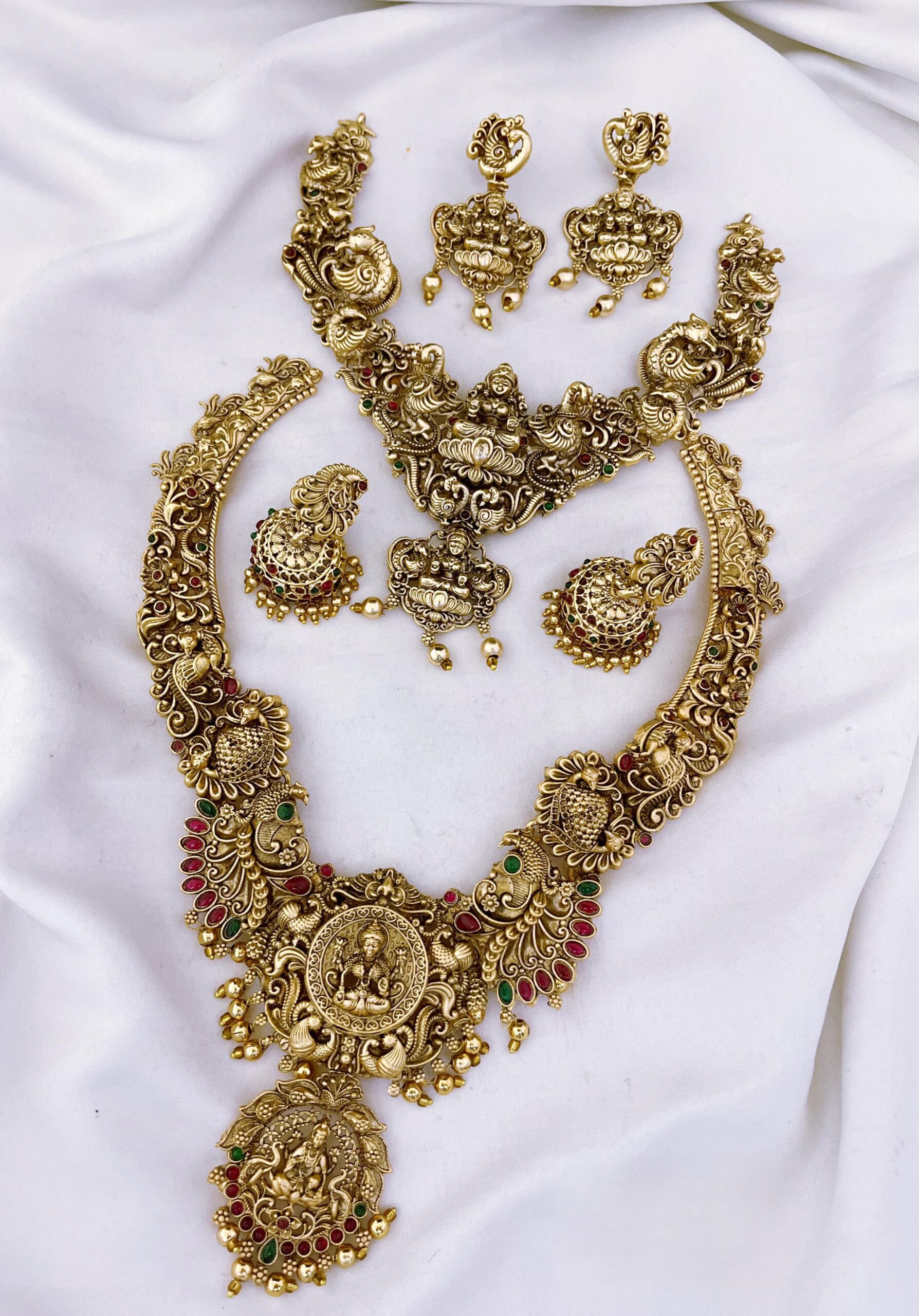 Kundan Temple Jewellery Set with Peacock Design, ORN30033