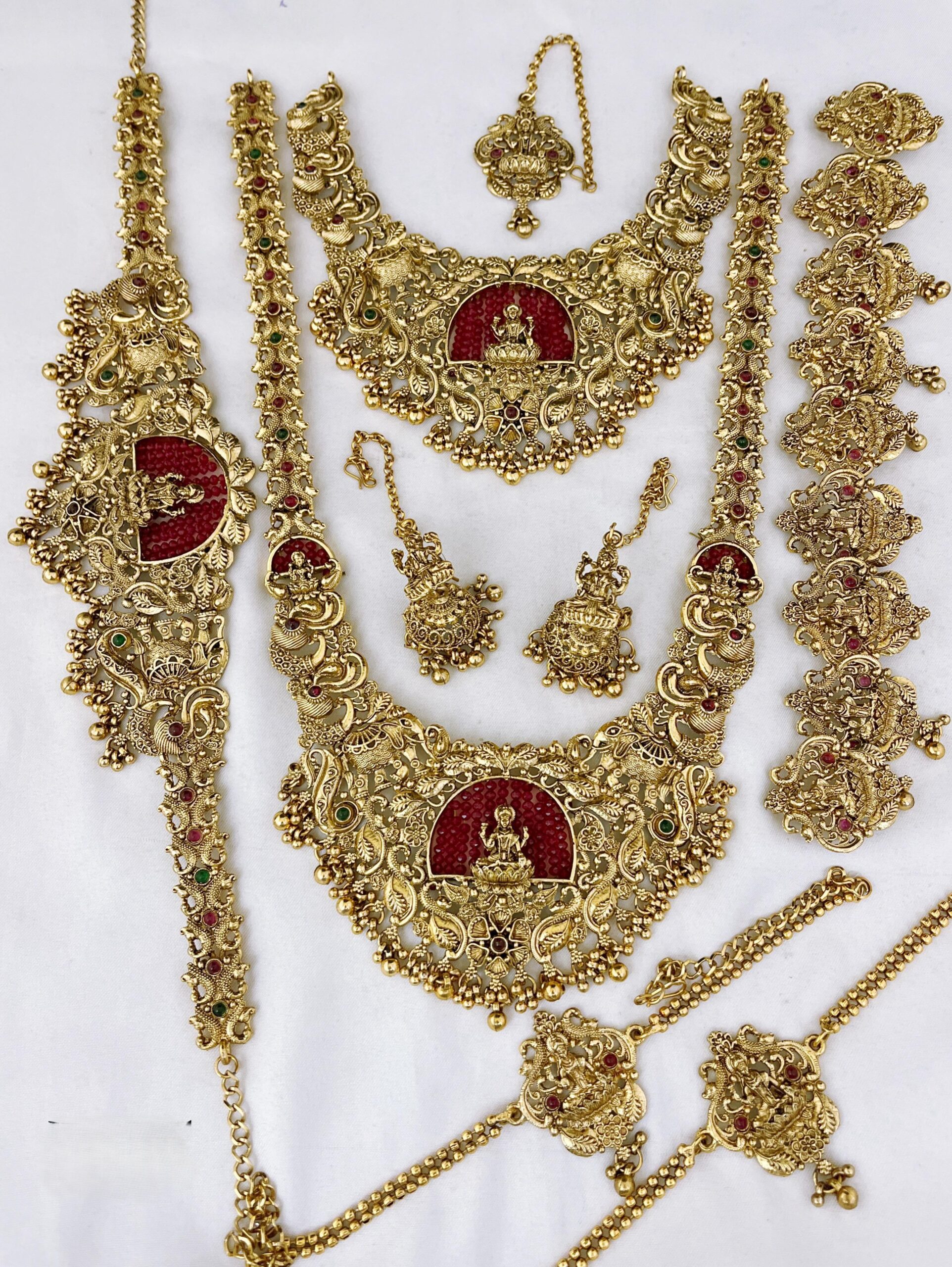 Elegant Kundan Temple necklace set designed with fine craftsmanship, giving a regal and timeless appeal for any ethnic outfit.