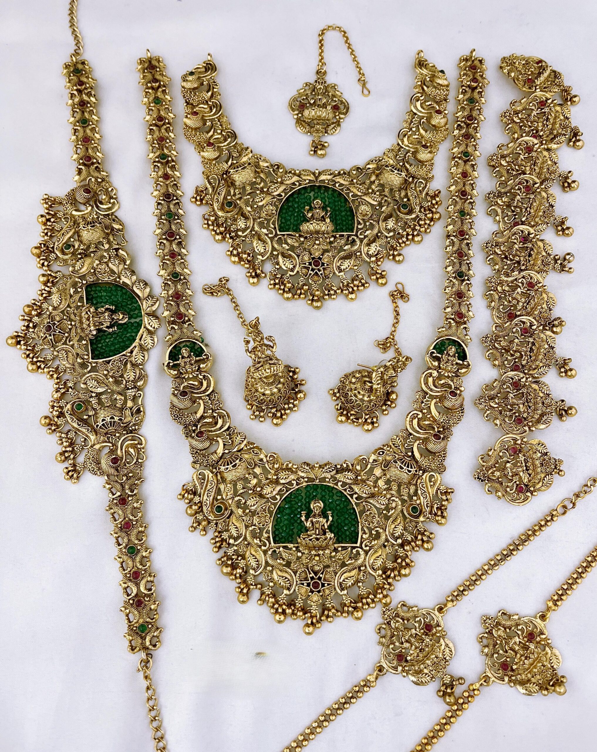 Vedika in our Temple Necklace Set including Maangtikka