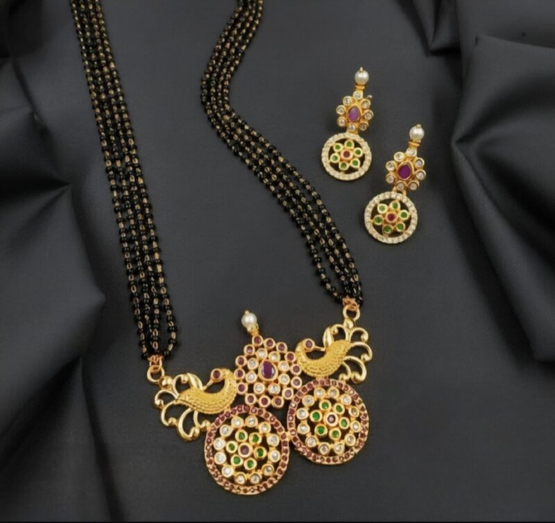 Celebrate timeless elegance with this exquisite mangalsutra and matching earrings – a perfect blend of tradition and contemporary charm.