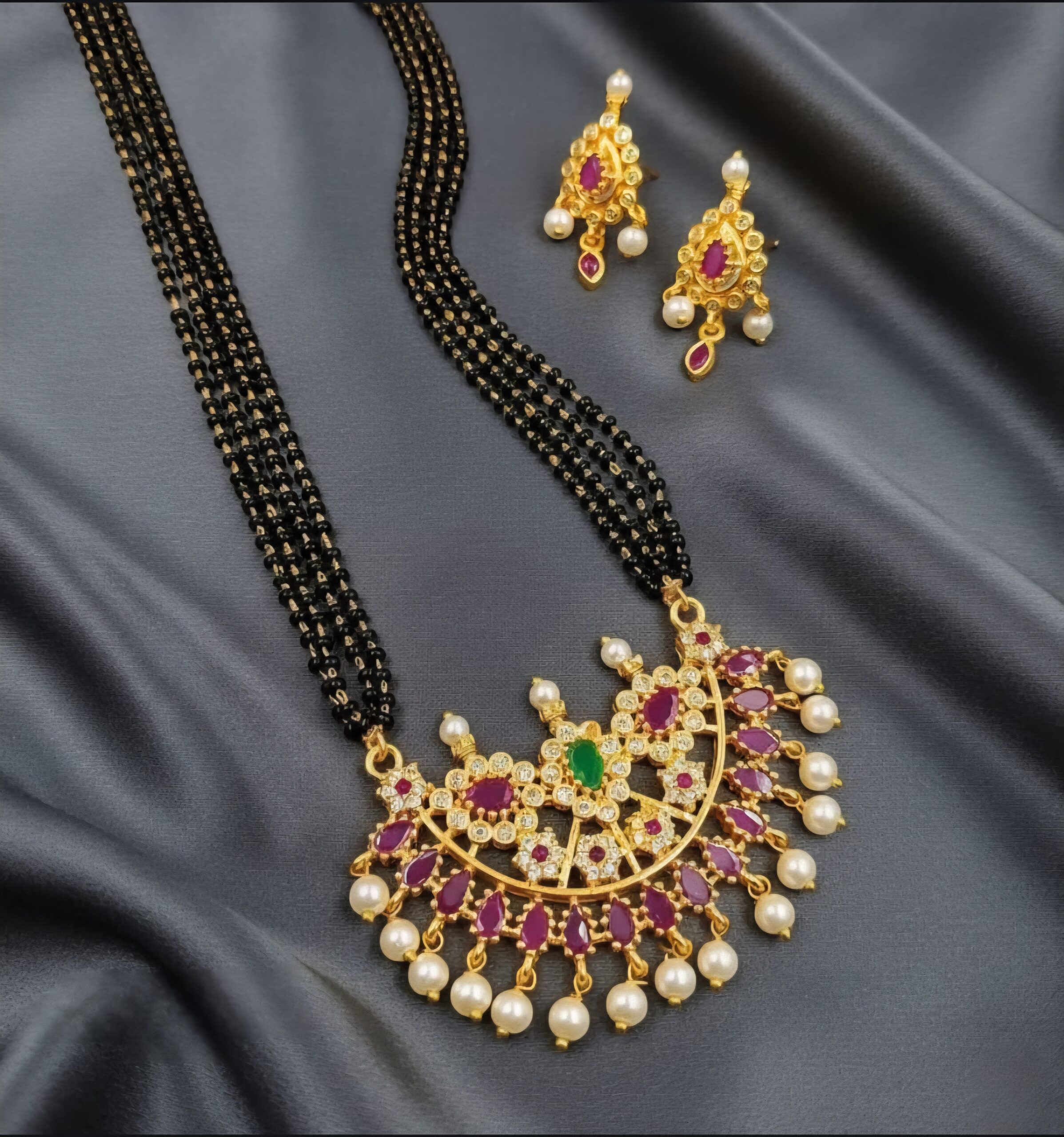 Celebrate timeless elegance with this exquisite mangalsutra and matching earrings – a perfect blend of tradition and contemporary charm.