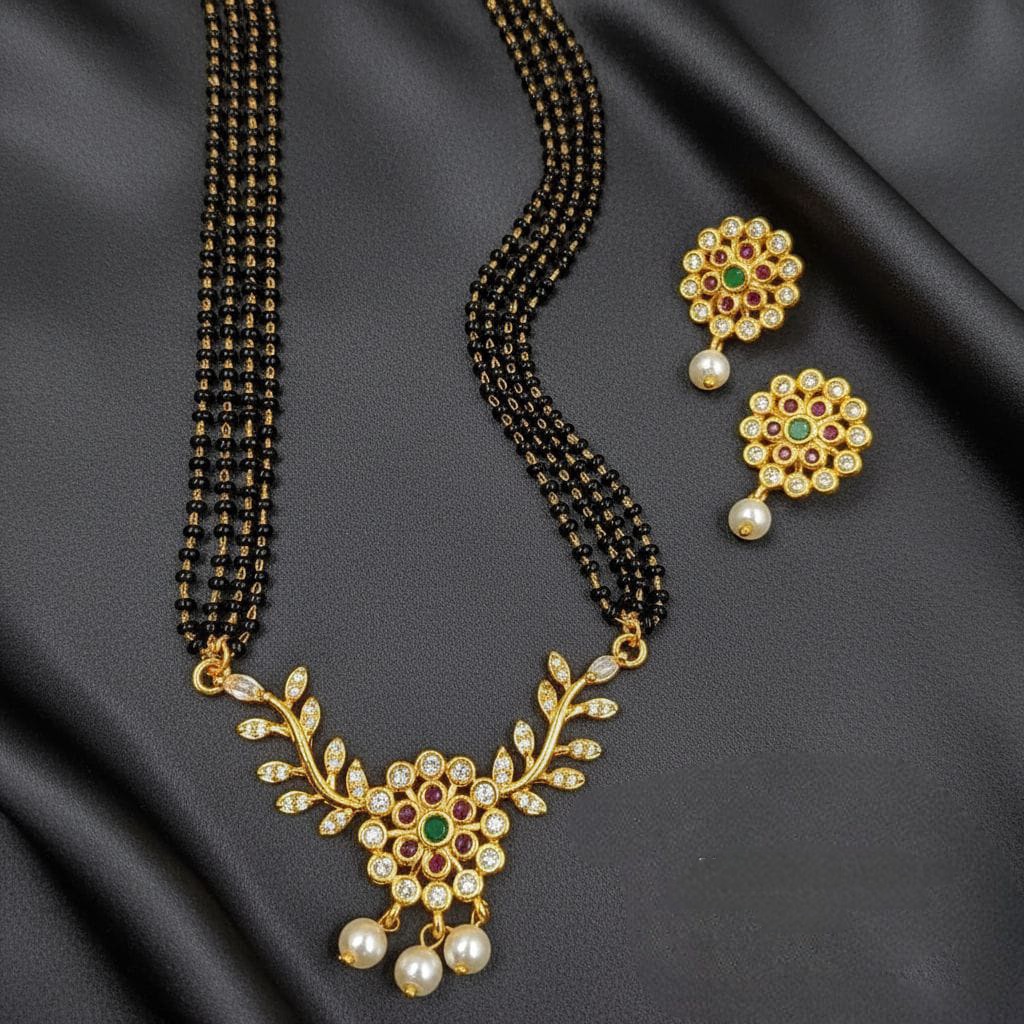 Celebrate timeless elegance with this exquisite mangalsutra and matching earrings – a perfect blend of tradition and contemporary charm.