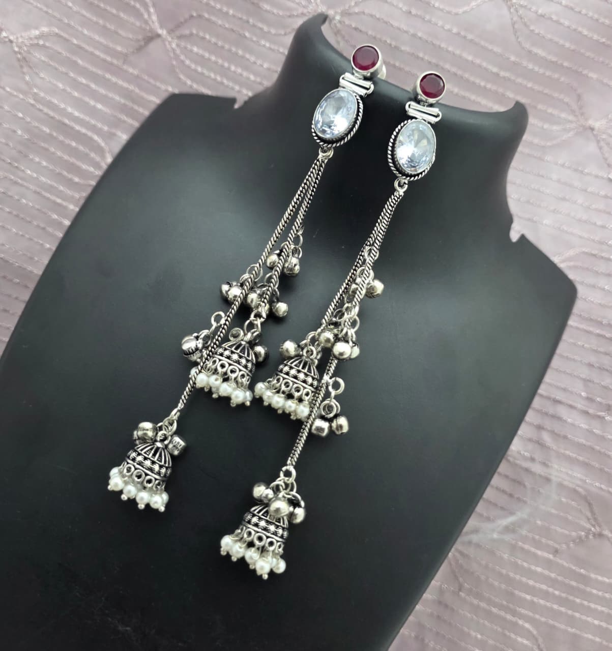 Crafted using traditional techniques, these oxidised earrings carry the essence of Indian craftsmanship. The antique sheen paired with detailed patterns celebrates heritage while complementing your contemporary wardrobe.