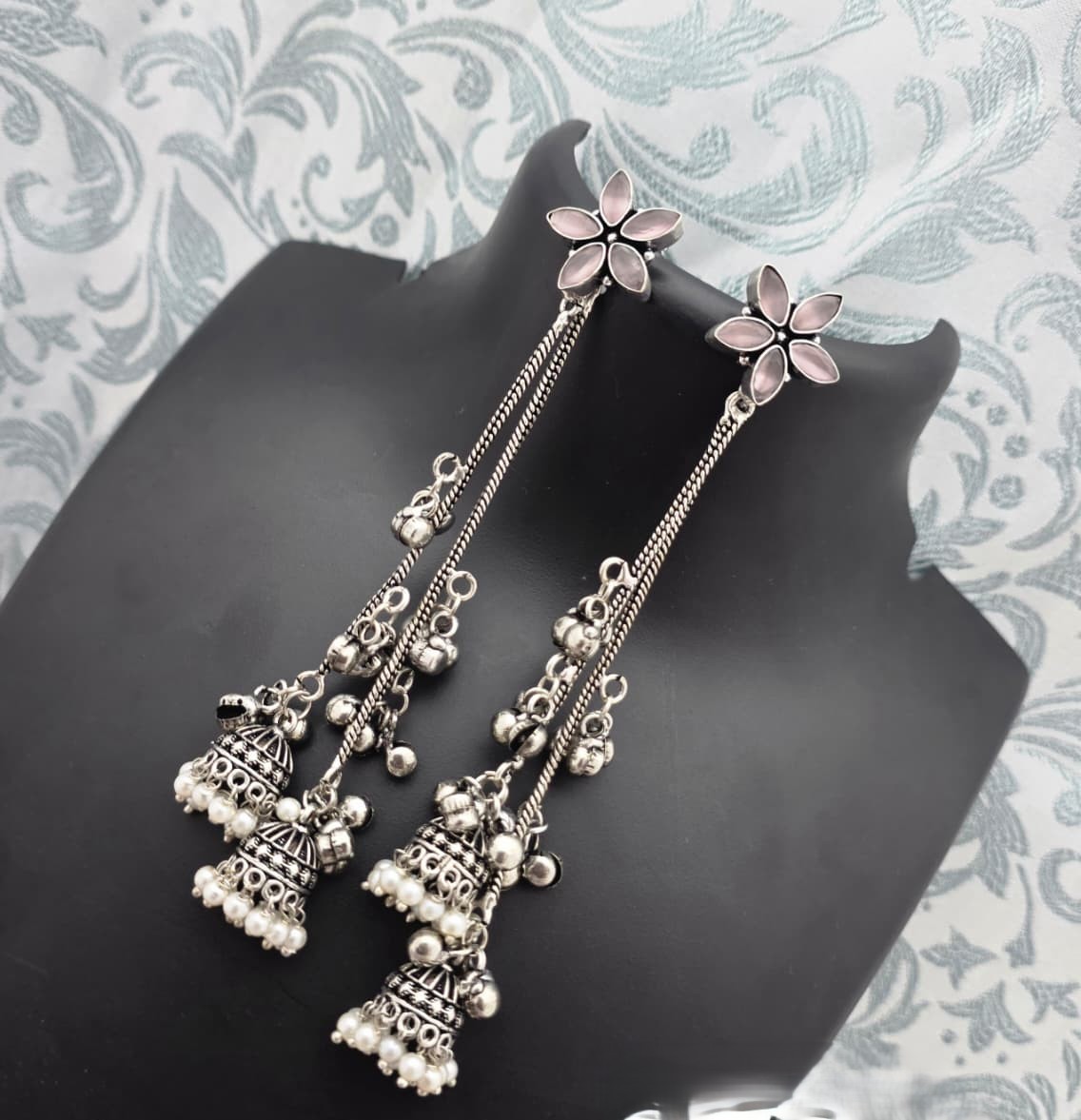 Crafted using traditional techniques, these oxidised earrings carry the essence of Indian craftsmanship. The antique sheen paired with detailed patterns celebrates heritage while complementing your contemporary wardrobe.