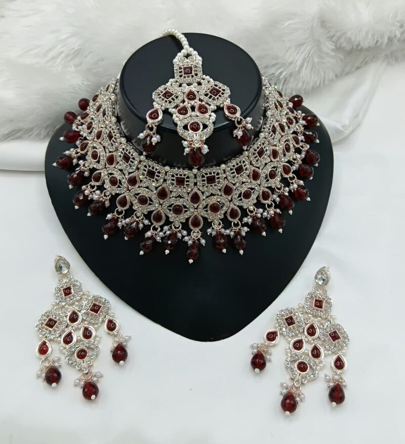 A delicately designed necklace set featuring intricate detailing and elegant. Paired with matching earrings and maangtika, it adds a graceful traditional charm to any festive or ethnic look.