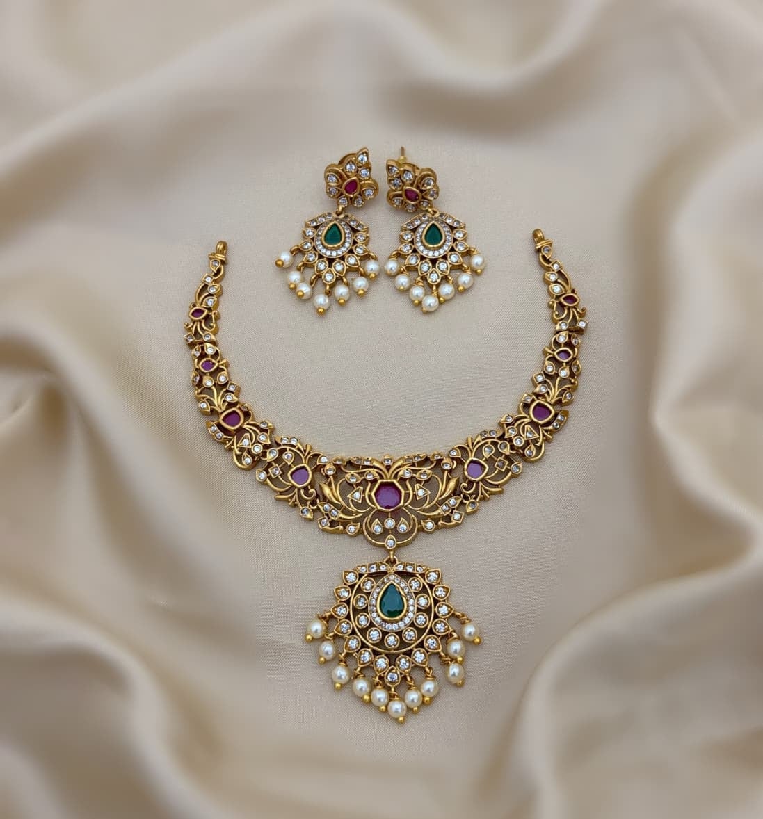 Elegant and timeless, the AD jewellery set includes a necklace and earrings. Designed to combine sophistication with traditional charm, it’s perfect for both weddings and special occasions.