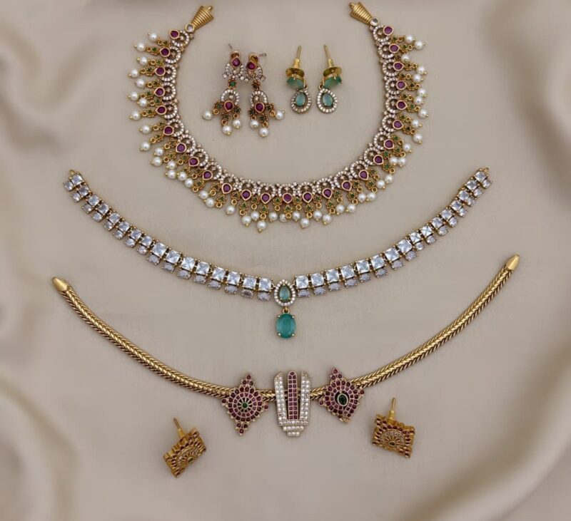 Elegant and timeless, the AD jewellery set includes a necklace’s and earrings. Designed to combine sophistication with traditional charm, it’s perfect for both weddings and special occasions.