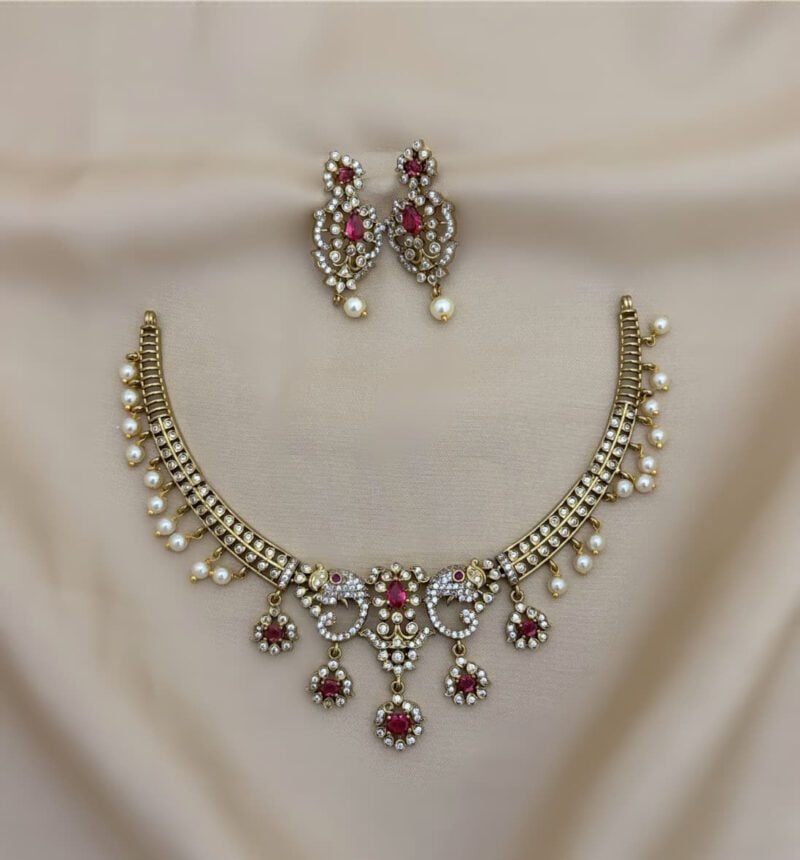 Elegant and timeless, the AD jewellery set includes a necklace and earrings. Designed to combine sophistication with traditional charm, it’s perfect for both weddings and special occasions.