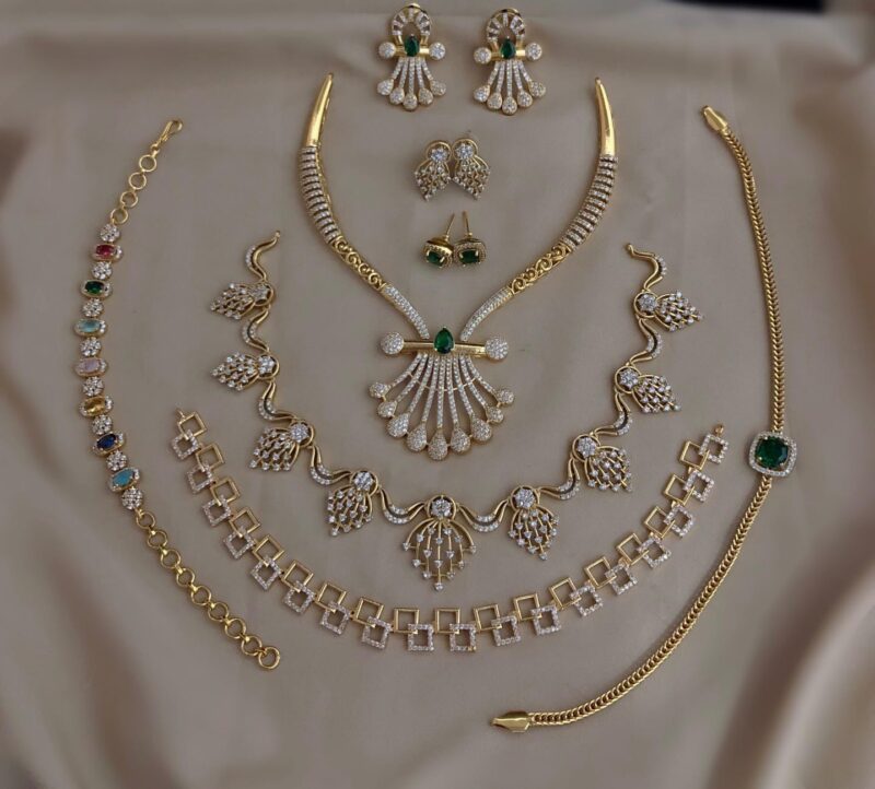 Elegant and timeless, the AD jewellery set includes a necklace’s and earrings. Designed to combine sophistication with traditional charm, it’s perfect for both weddings and special occasions.