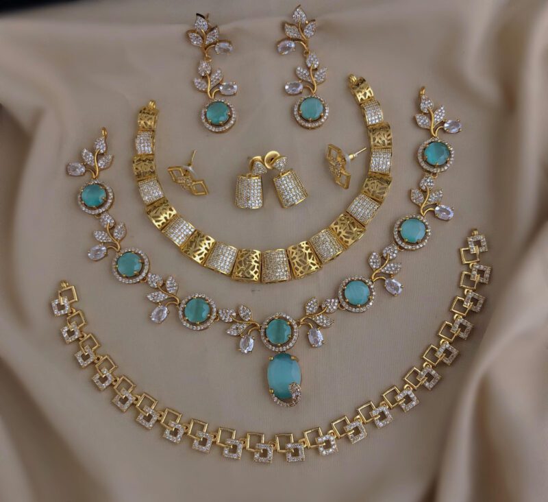 Elegant and timeless, the AD jewellery set includes a necklace and earrings. Designed to combine sophistication with traditional charm, it is perfect for both weddings and special occasions.