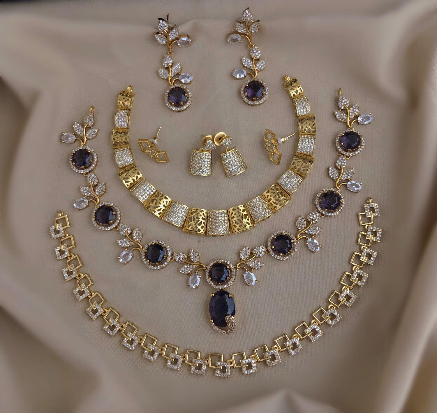 Elegant and timeless, the AD jewellery set includes a necklace and earrings. Designed to combine sophistication with traditional charm, it is perfect for both weddings and special occasions.