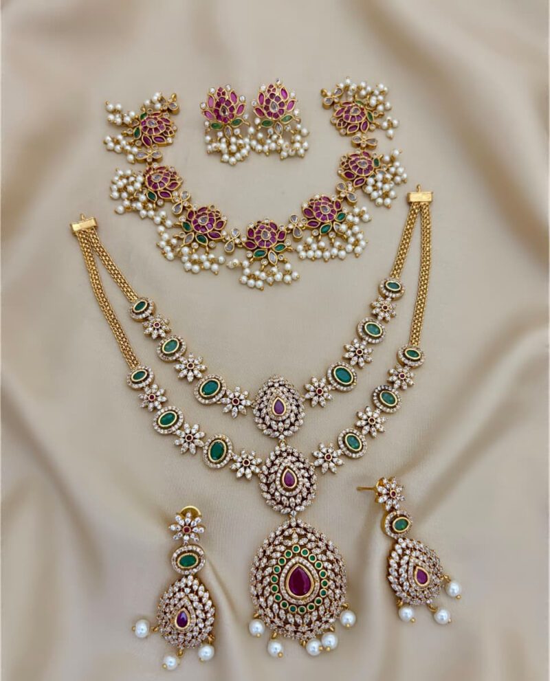 Elegant and timeless, the AD jewellery set includes a necklace and earrings. Designed to combine sophistication with traditional charm, it is perfect for both weddings and special occasions.