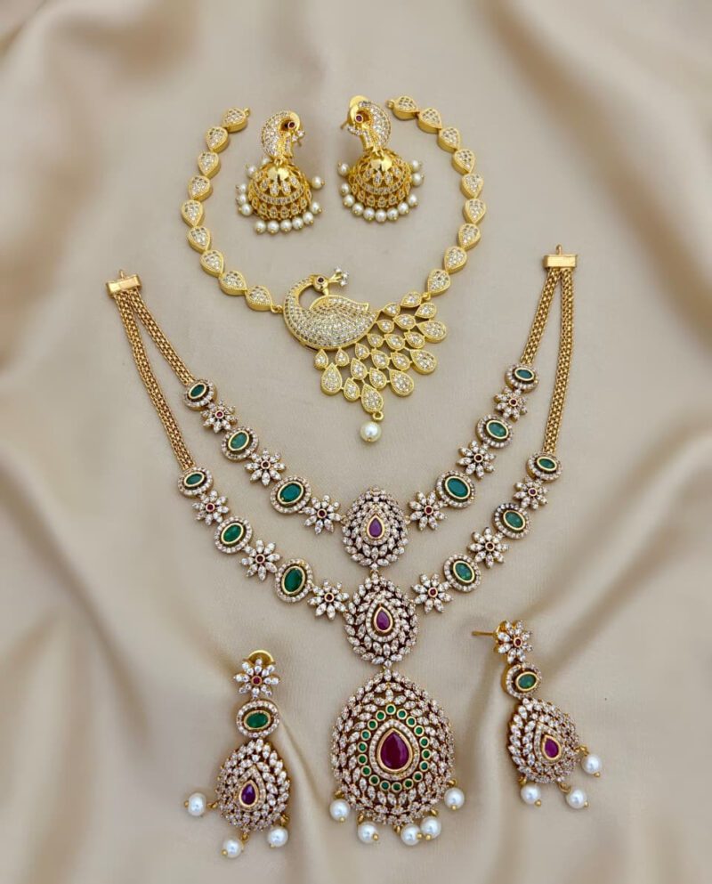 Elegant and timeless, the AD jewellery set includes a necklace and earrings. Designed to combine sophistication with traditional charm, it is perfect for both weddings and special occasions.