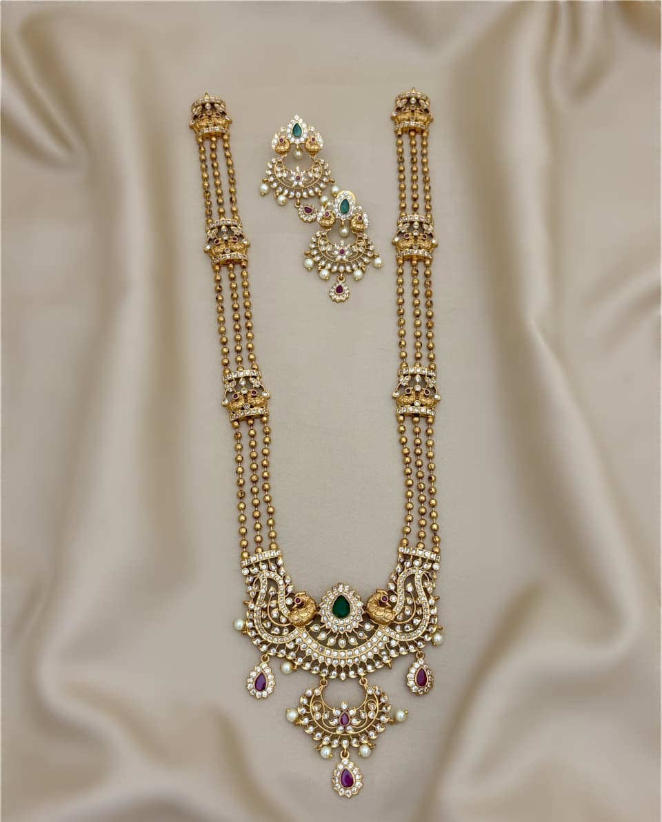 Elegant and timeless, the AD jewellery set includes a necklace and earrings. Designed to combine sophistication with traditional charm, it is perfect for both weddings and special occasions.