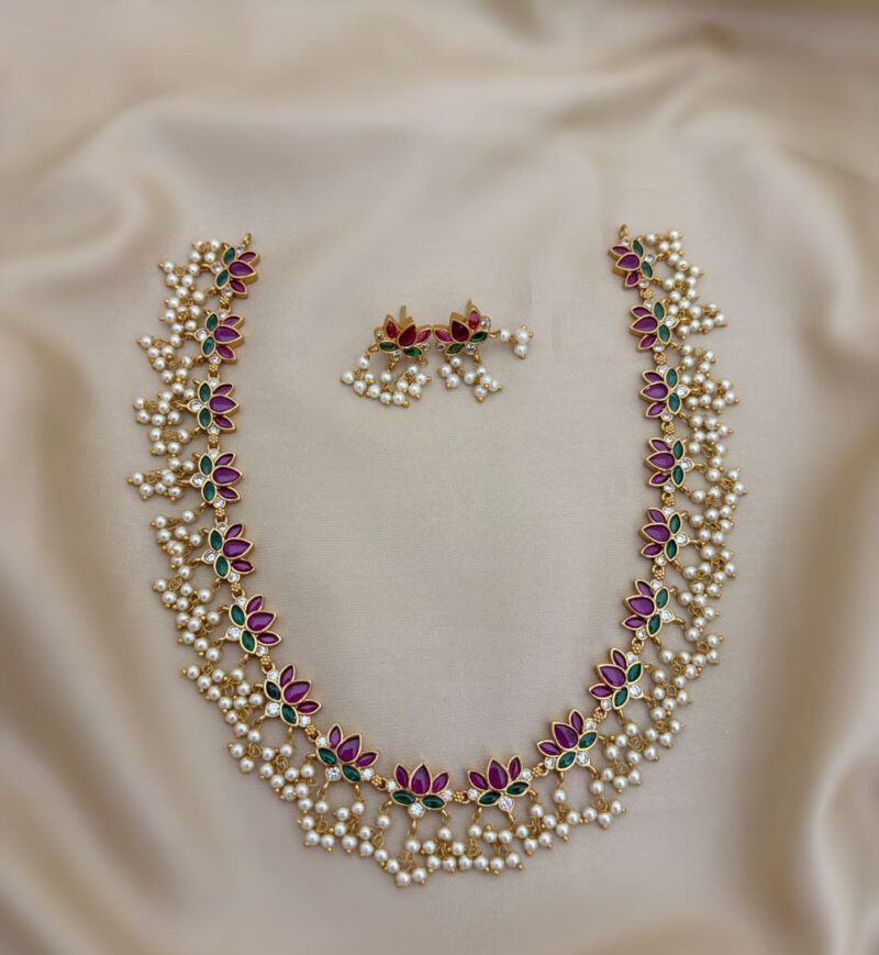 Elegant and timeless, the AD jewellery set includes a necklace and earrings. Designed to combine sophistication with traditional charm, it is perfect for both weddings and special occasions.