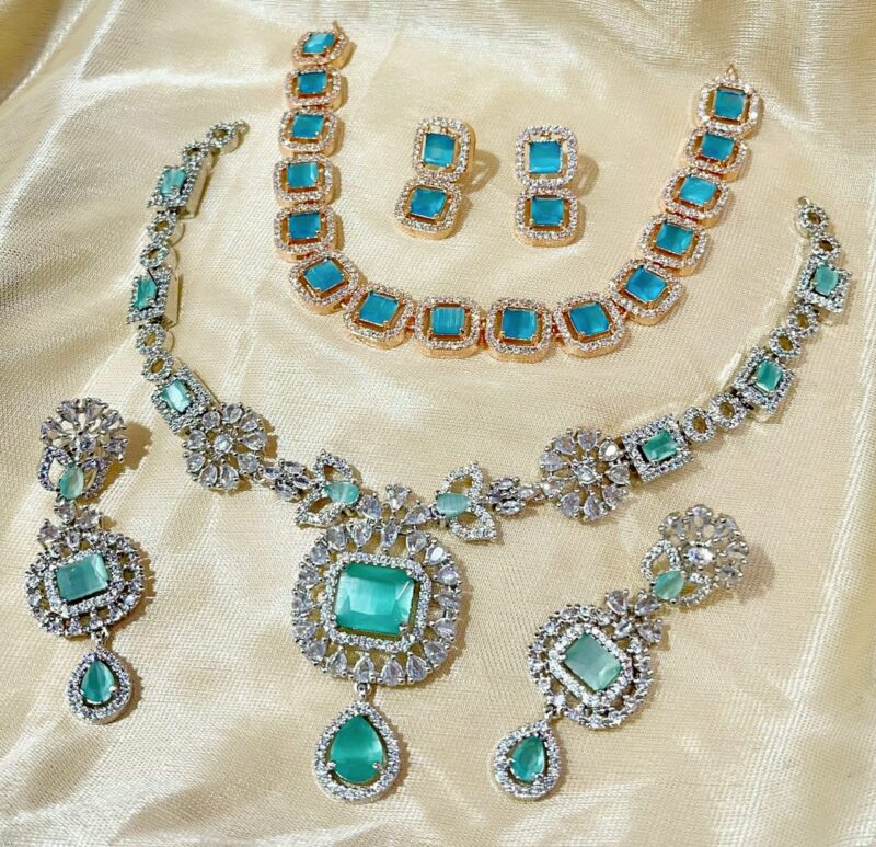 Elegant and timeless, the AD jewellery set includes a necklace and earrings. Designed to combine sophistication with traditional charm, it is perfect for both weddings and special occasions.