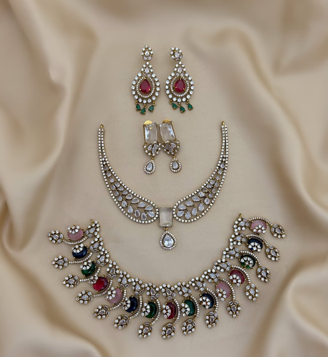 Elegant and timeless, the AD jewellery set includes a necklace and earrings. Designed to combine sophistication with traditional charm, it is perfect for both weddings and special occasions.